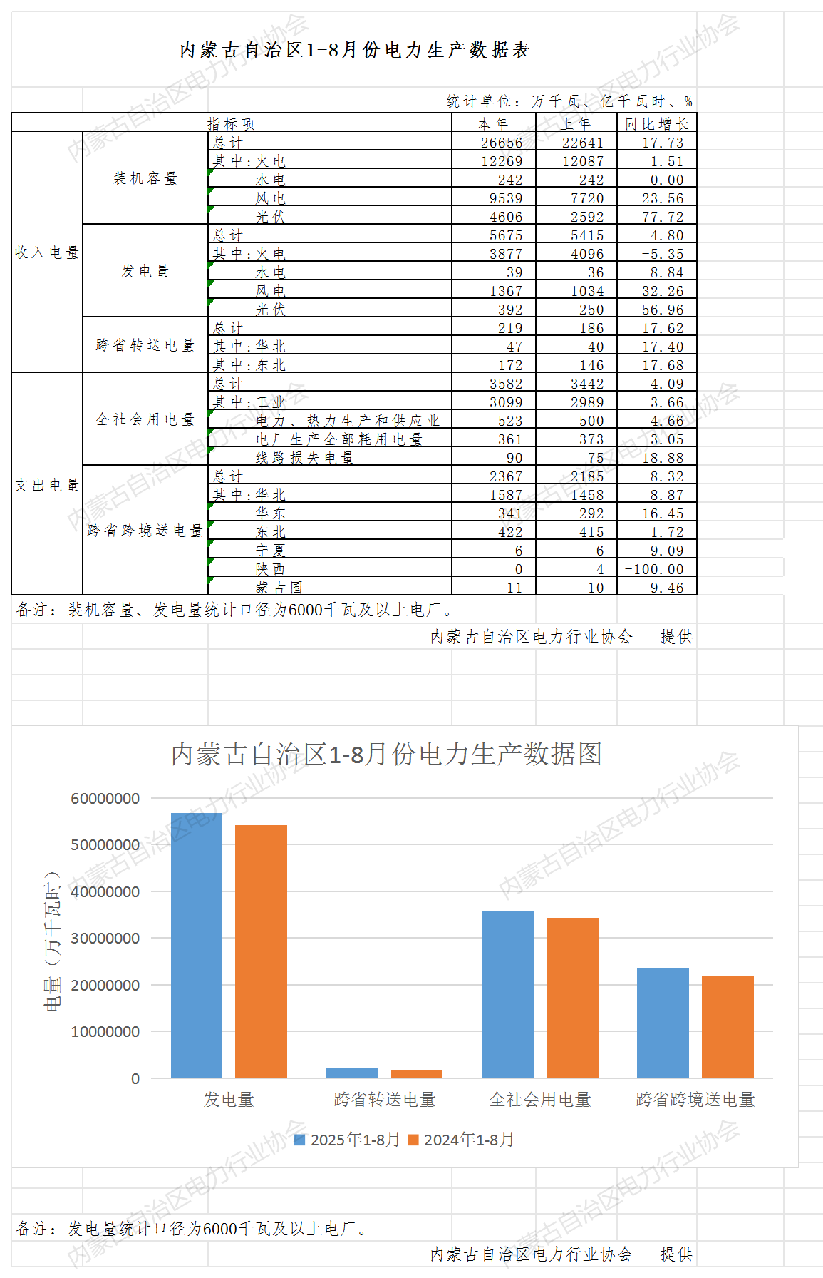 内蒙古自治区电力行业协会统计月报2025年第8期