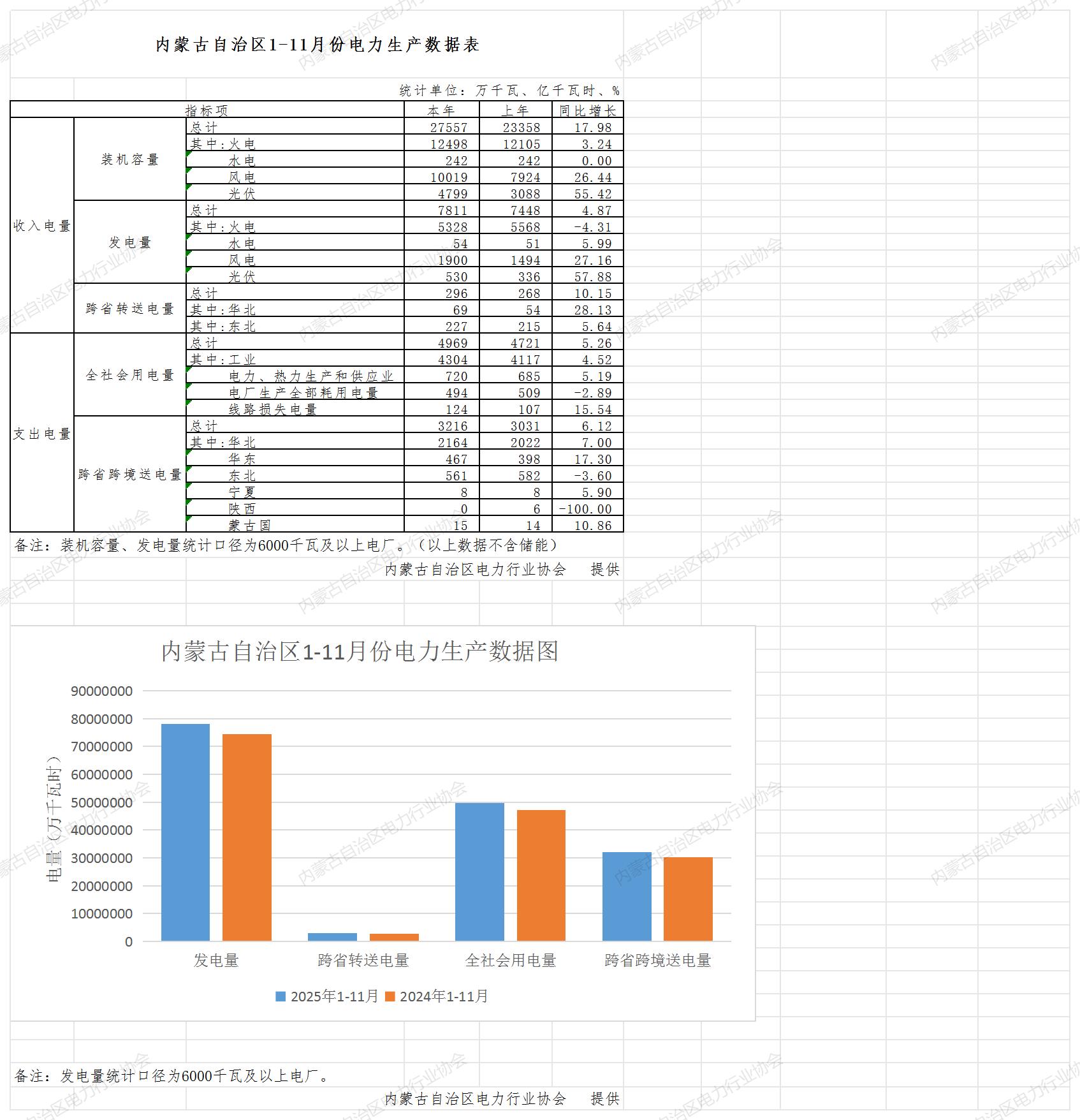 内蒙古自治区电力行业协会统计月报2025年第11期