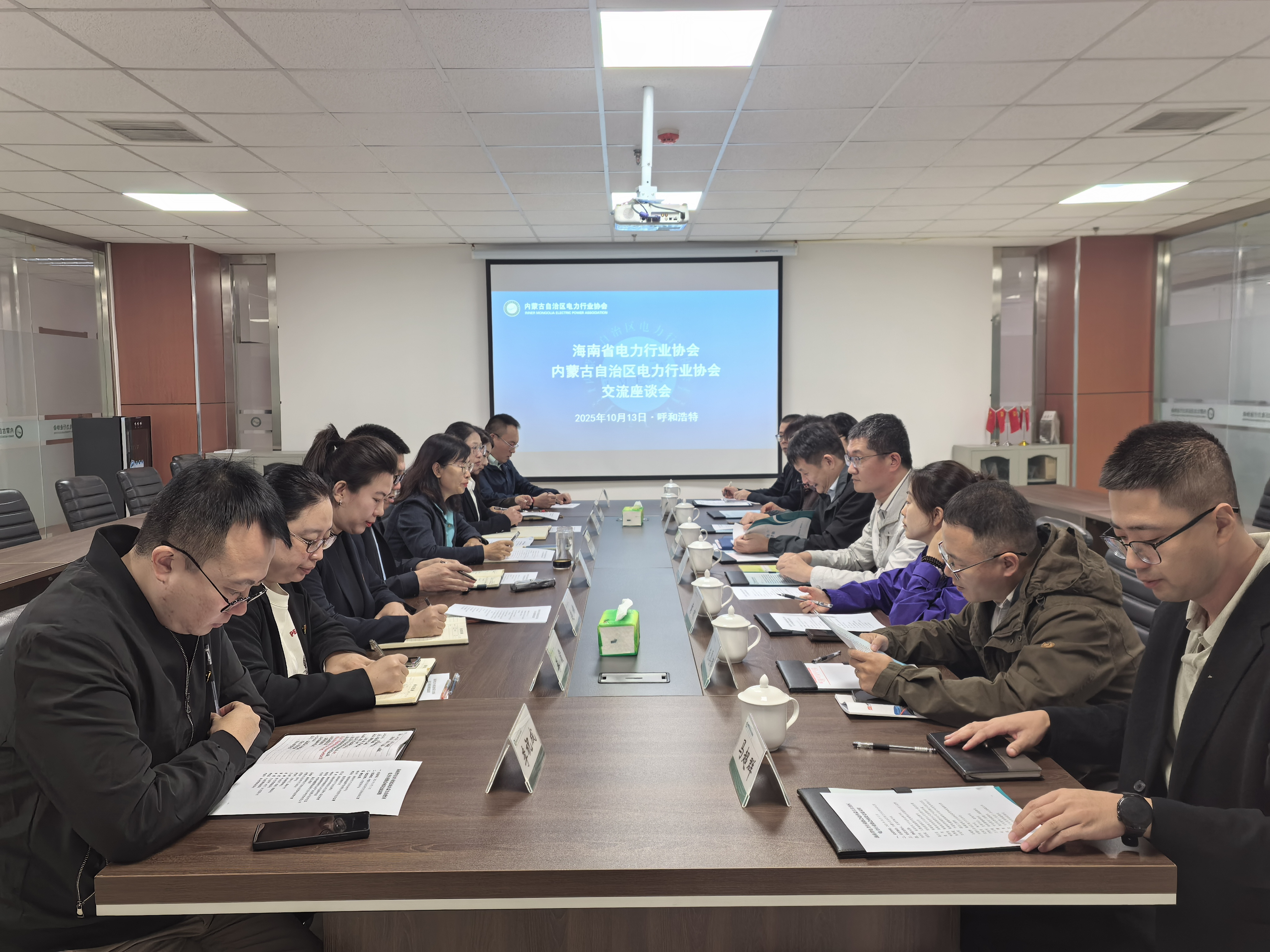 10月13日上午,海南省电力行业协会杨劲松秘书长一行到访自治区电力行业协会,双方进行座谈交流。自治区电力行业协会秘书长武俊芳、副秘书长伊胜利,海南省电力行业协会秘书长杨劲松,以及随行的大唐海南能源开发有限公司、海南电网有限责任公司等3家有关单位及部室负责人,协会相关部门负责人参加座谈。
